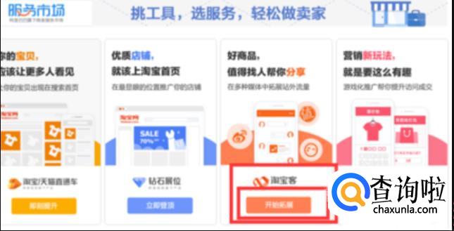 在点击进入“我要推广”以后,我们可以在右侧对话框找到“开始拓展”,点击进入。(如下图所示)