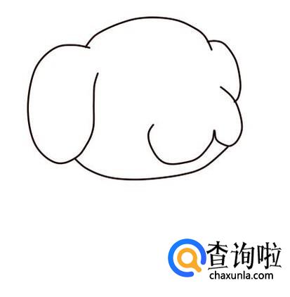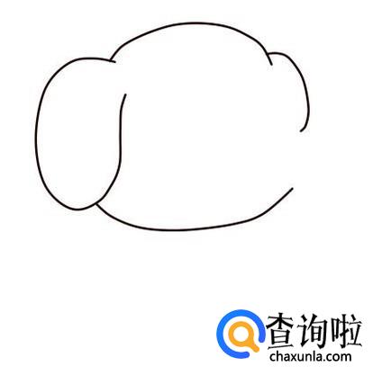 在两条弧线的左边,画一个不封口的椭圆形,表示小狗的耳朵,在两条弧线的另一端,画一条短弧线,表示另一只耳朵。