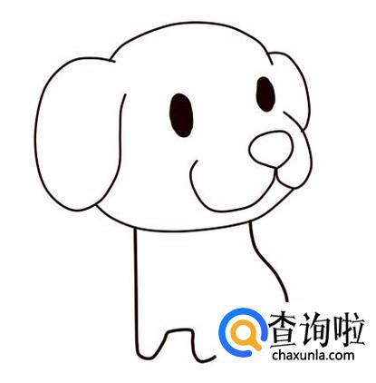 在头部下面,画出小狗短短的身子和短短的腿,先画前面的三条腿,最后一条腿,在第二和第三条腿之间画。