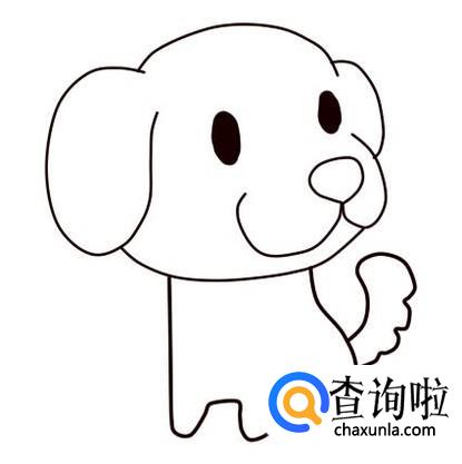 画小狗,要画出大大的头、小小的身体、短短的腿、大大的耳朵,用简单的弧线来画,好看又简单,下面就开始画小狗。