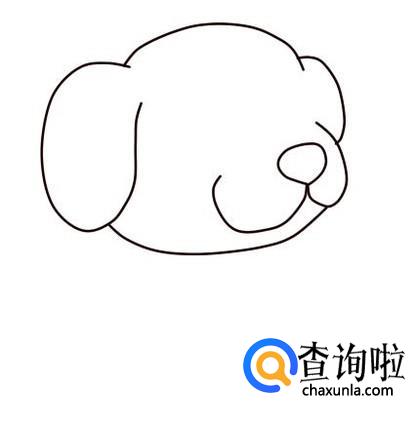 在小狗下巴上面,画一个躺着的3,表示小狗嘴部的突出部位。