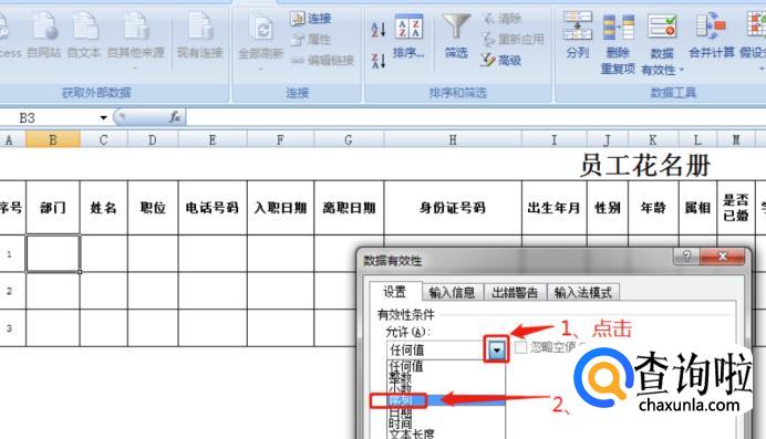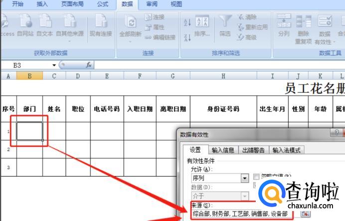 如列项"部门"、"是否已婚"、"学历"、"政治面貌"、"民族"、"保险类型"。
