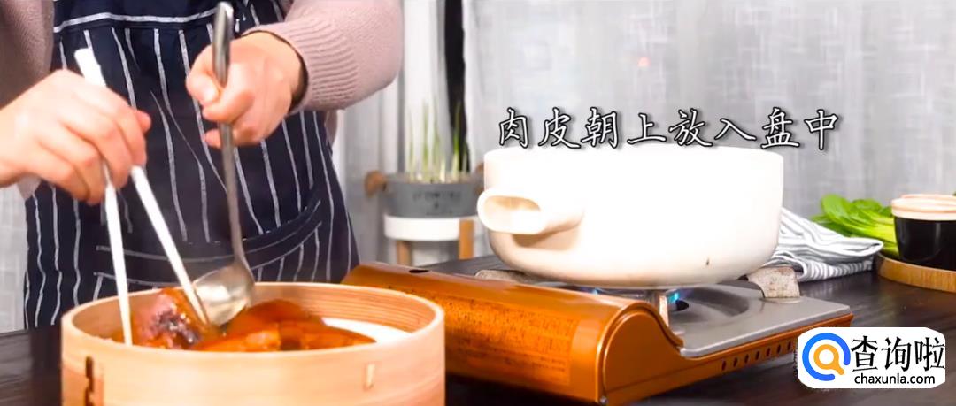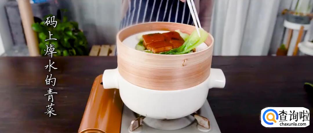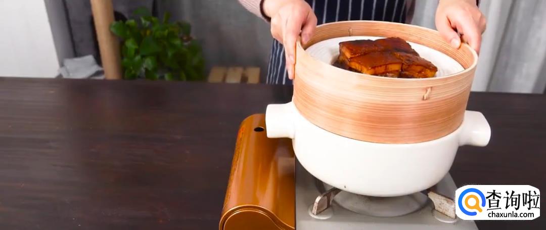 炖锅内倒入水,将东坡肉上蒸笼开火蒸20分钟后可端出。