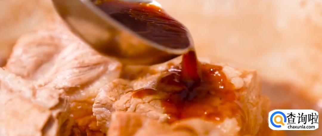 将炖锅上炉,炖煮1小时。开盖后将汤汁淋在肉上,收汁片刻后捞出,皮朝上放入盘中,再淋上汤汁。