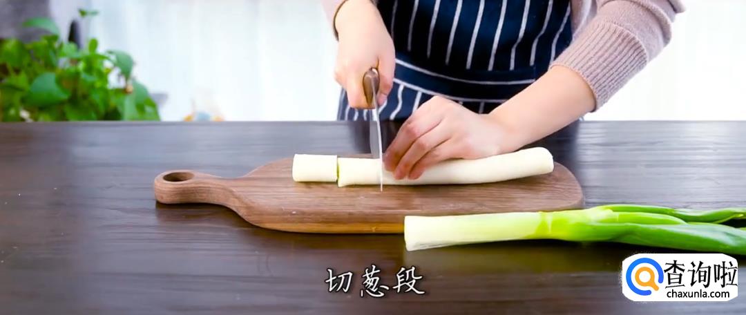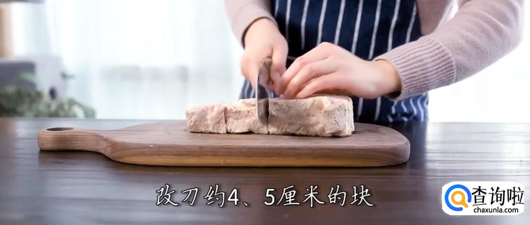 将肉块改刀切成4-5cm的肉块,葱切段,姜切片。