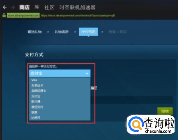 选择支付方式,在中国大陆,steam的支付方式包含支付宝、微信等多种方式。
