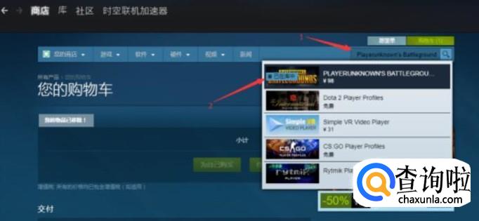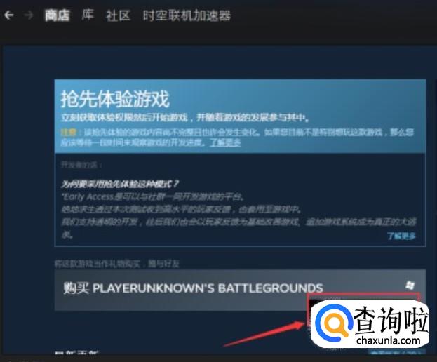 steam注册安装完毕以后,打开steam,登入自己的账号,在steam商店页面中的搜索框内输入:Playerunknown's Battlegrounds(觉得太长了也可以搜索“PL”)。