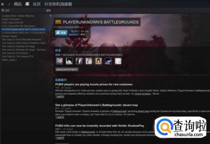 购买完成以后,绝地求生:大逃杀便会在您的steam库中,左侧列表中找到Playerunknown's Battlegrounds(绝地求生:大逃杀的英文名),单击选中,点击右侧出现的“安装”按钮。