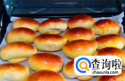 面团醒好之后,可以包上一些豆沙,或者是夹上香肠,做成各种各样的小面包,在上面刷一层鸡蛋黄液,直接用烤盘装着放进烤箱里烘烤就可以了。