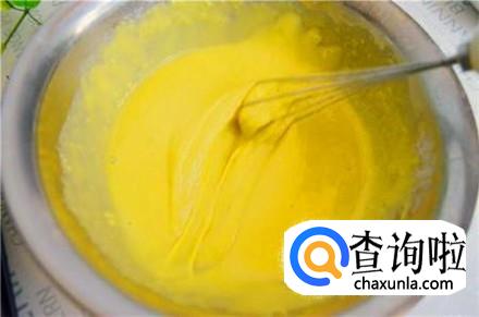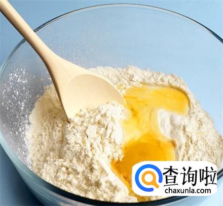 加上一些白糖,一块黄油溶化之后倒进去,没有黄油的加一些烧热的玉米胚芽油也可以,然后加上一点点泡打粉,用筷子不断的搅拌均匀。
