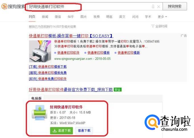 在浏览器搜索“好用快递单打印软件”,把它下载,并安装在电脑里面。