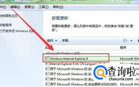 在更新列表中找到Windows Internet Explorer9,右键一下,然后点击卸载,如图所示。