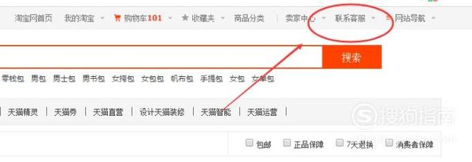 然后在淘宝网站的右上角,点击【联系客服】,如下图所示: