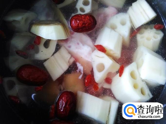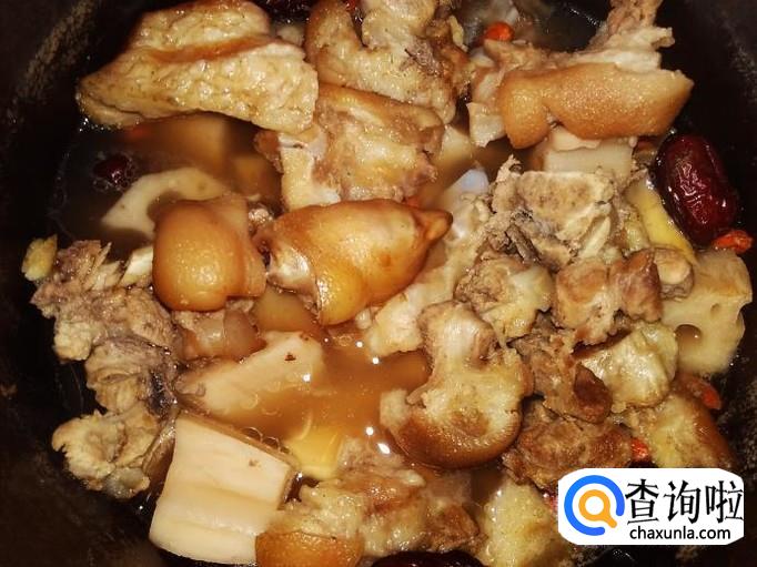 猪脚600克,莲藕300克,红枣、枸杞、当归、黄氏、料酒适量。
