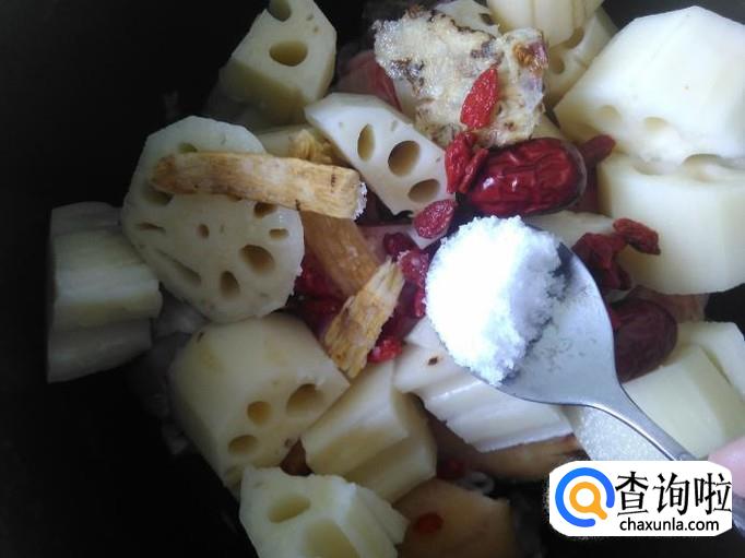 炖够时间,打开盖子下几粒味精进去搅拌均匀。