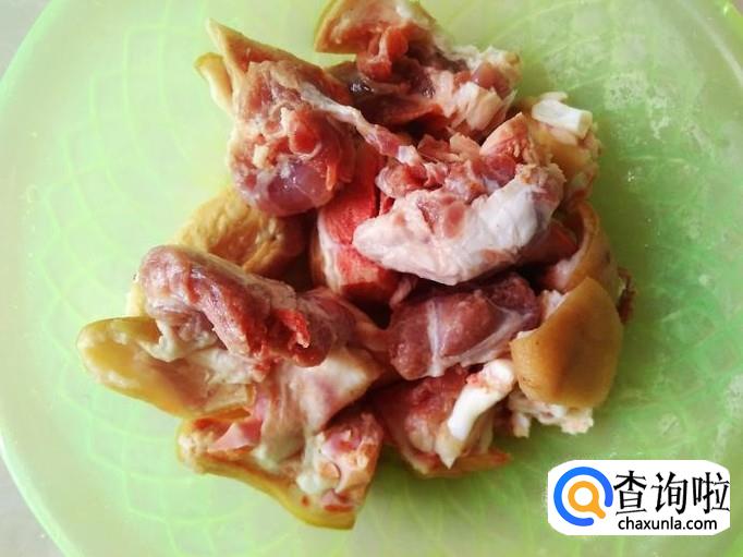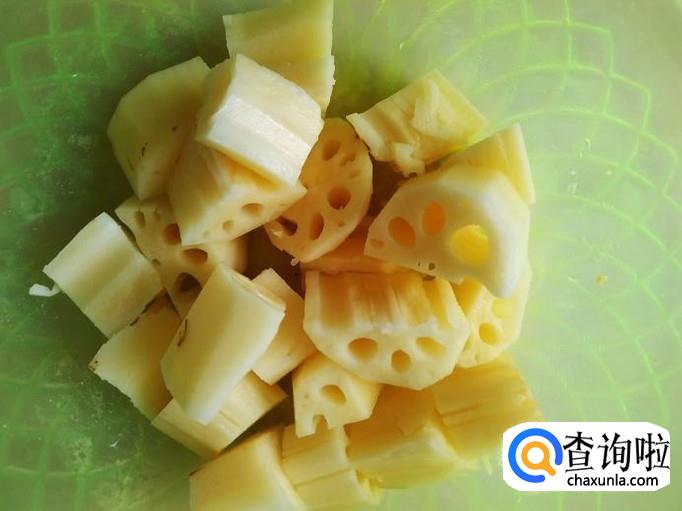 把猪脚清洗干净,斩成一段段,莲藕去皮切成方块。