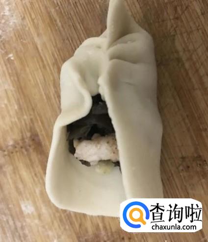 包饺子。如果饺子皮比较干的话,可以在皮的周围弄点水,这样更容易粘合在一起,然后将饺子皮往中间合,由一边到另一边合在一起,合的过程中可以捏出花纹,这样的饺子更好看。