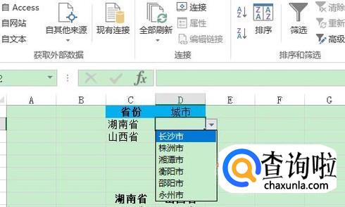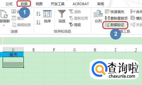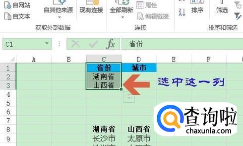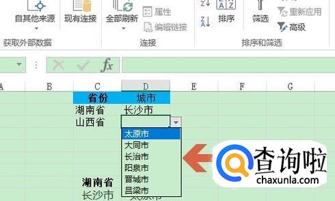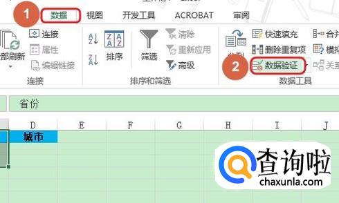 接下来选中二级目录中的城市这一列,再次点击“数据”-“数据验证”选项;