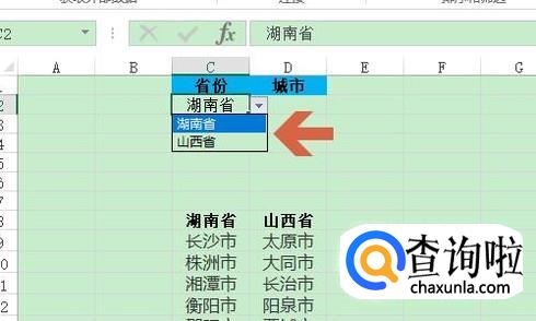 点击确定返回到表格,我们就会发现省份这一列添加了下拉菜单,如图一所示...那么后面的二级联动下拉菜单怎么制作呢?我们选中下面的省份和城市;