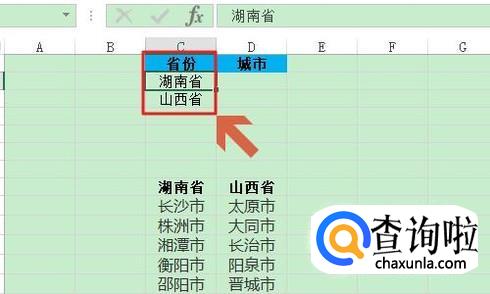 二级联动下拉菜单运用最多的就是在输入省份和对应地级市的时候,比如下图中的“省份”这一列就属于一级目录;