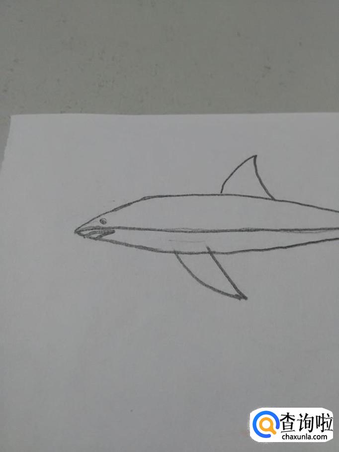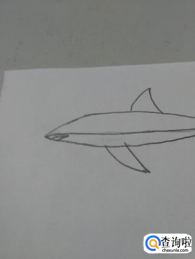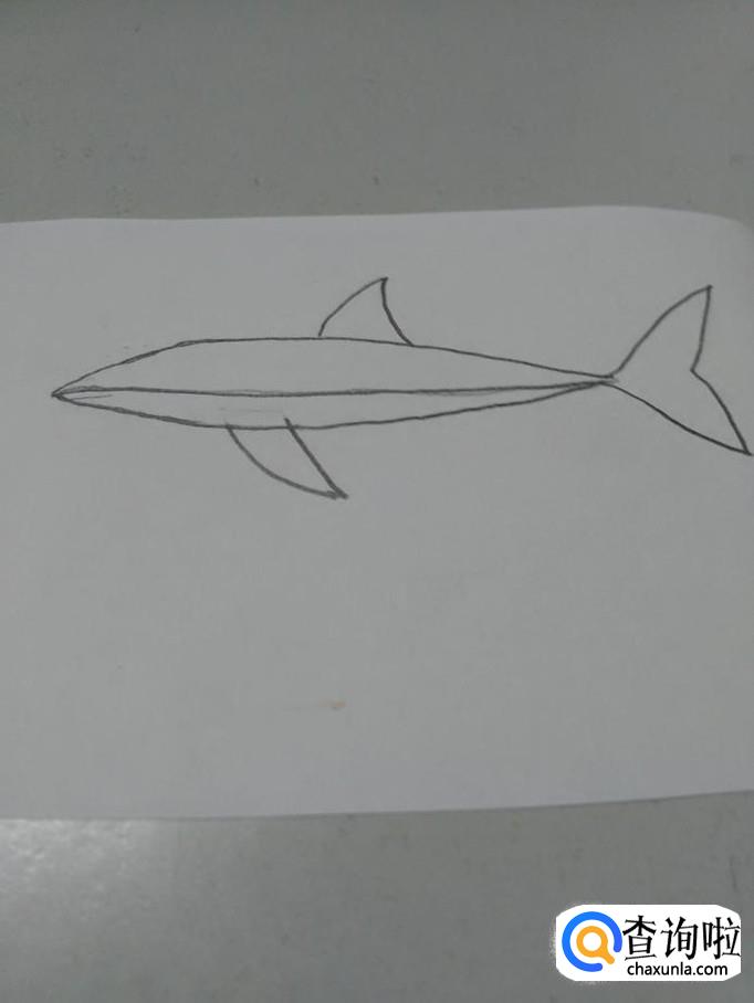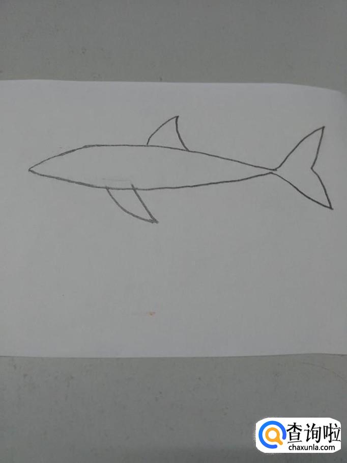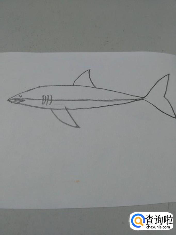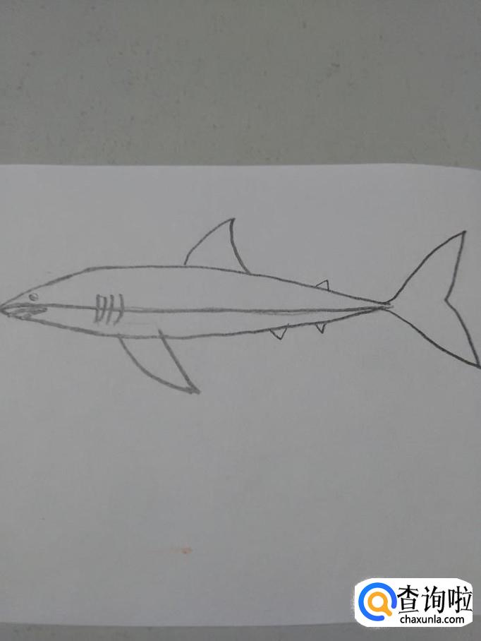 在鲨鱼身体上,画一条横线,表示背部和腹部的分界线。