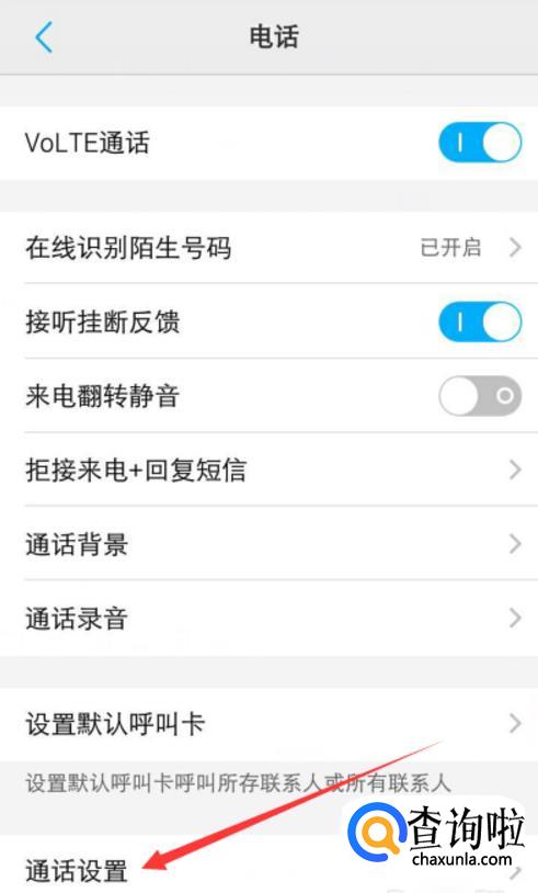 下翻至语音通话设置的位置,在这里可以进行呼叫转移的设置。