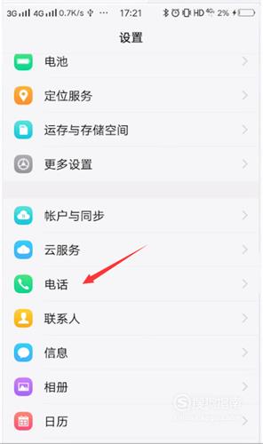 接下来点击设置页面的电话。
