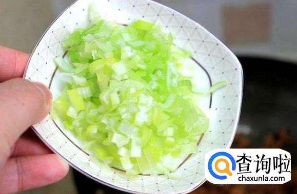 取一段葱切成细细的葱末。取一块姜,去皮后切成姜末。然后加入到肉馅内。