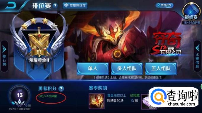 当勇者积分满足80分时,就可以有一次保星的机会,这样即使输了,我们辛辛苦苦打上去的段位也不会掉星啦