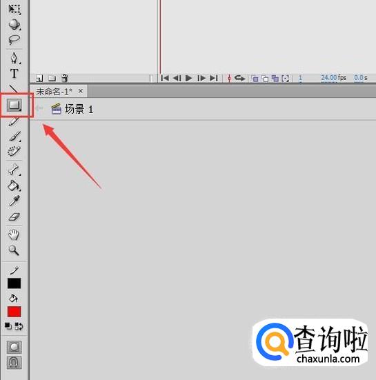 打开flash之后在工具箱内找到矩形工具,如图所示: