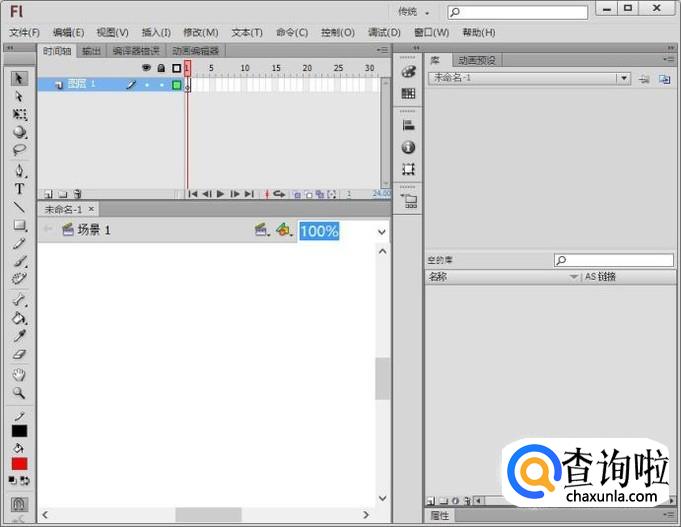 我们在桌面上双击flash的快捷图标,将flash这款软件打开,进入到flash的操作界面如图所示: