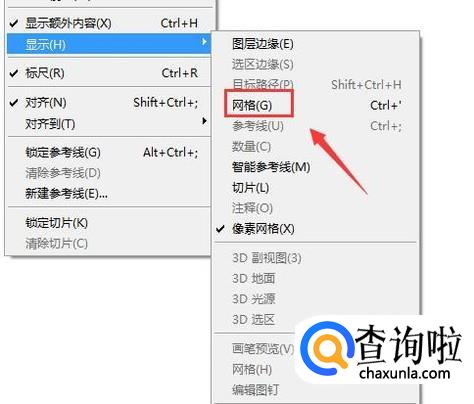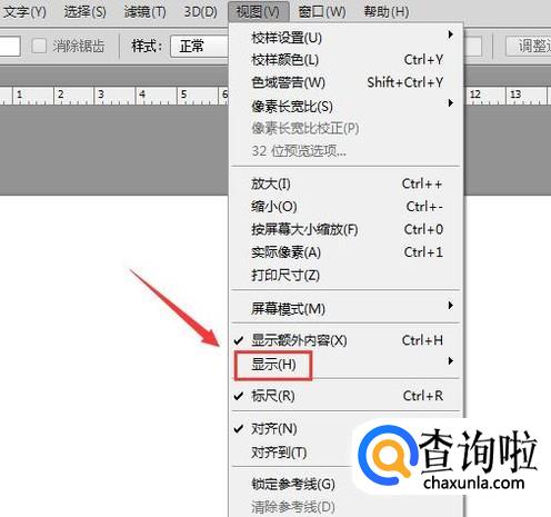 打开ps新建一个文件,然后在视图菜单那里找到显示选项,如图所示: