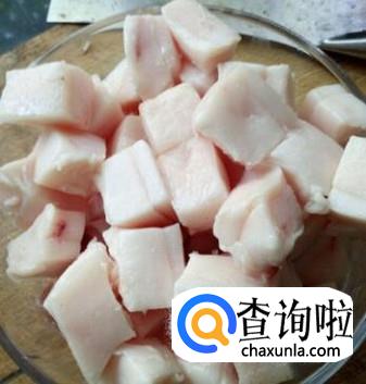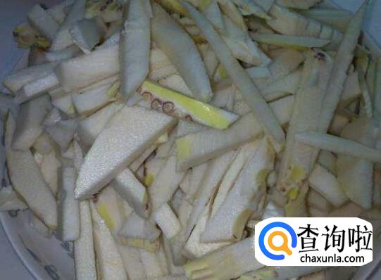 肥肉切块,笋切成6厘米的长条。