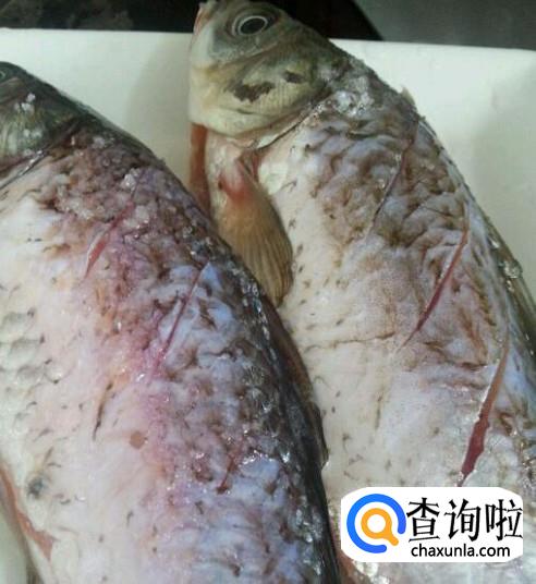 将鱼清理干净,划上斜刀。