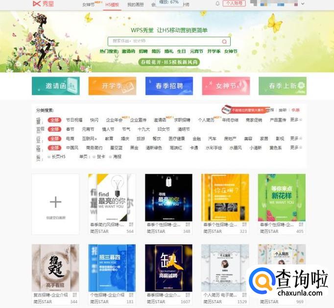 登录账号之后,我们就进入了h5的页面内,可以直接在线选择现有的模板(免费和收费两种),大家可以根据需求来选择。
