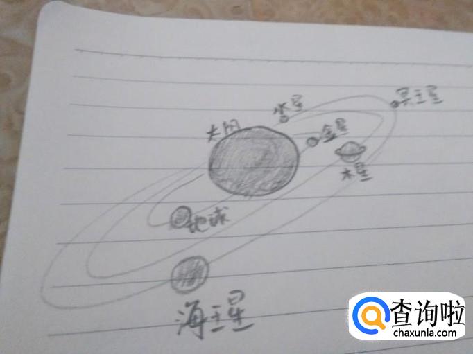 最后把星体的颜色涂黑让星体更具质感,再把每颗星体的名字标注出来,这样一幅太阳系的平面图就完成啦。