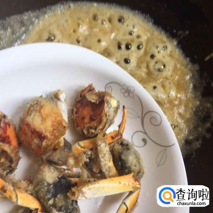 接着把炸好的螃蟹倒入锅中翻炒两分钟就可以出锅了。
