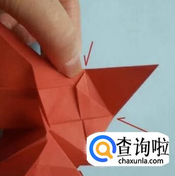 夹着在边角两点之间折一条线,将尖角如图手法折进去。