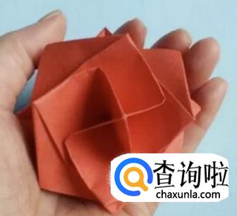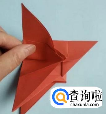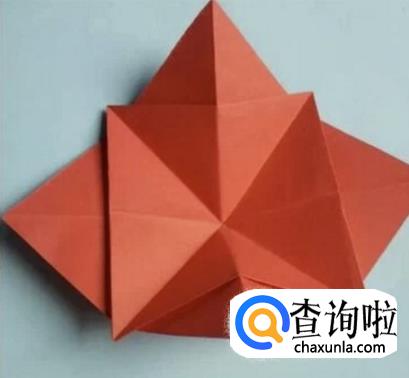 接着将纸片打开,然后再合什,就得到如图所示形状。