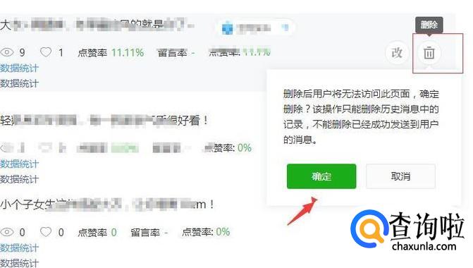 选择确认之后,会提示再次管理员扫码确认,在手机上确认之后,错误的文章就删除了