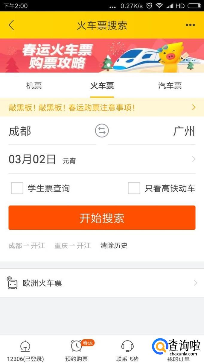 这里我介绍的是飞猪软件,如果用其他软件抢票的小伙伴也是一样的方式哦。我们大多认为是元宵节前后返程最拥挤,要么好多上班族在十号左右就要回去继续工作,要么好多人要等过完春节也就是元宵节才出远门。