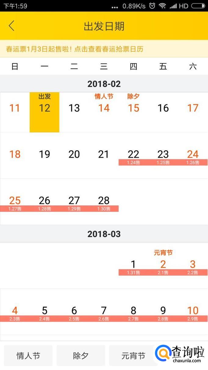 由于火车票是提前28天发售的,所以现在还没发售元宵节前后的票,但是可以预约,等售票时就可以直接抢票了。