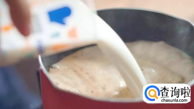 煮出茶味后再加入牛奶,接下来转小火煮沸。