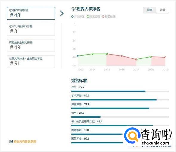 注:QS世界大学排名是世界公认最具影响力的全球性大学排名之一,主要评价指标为:学术领域的同行评价(40%)、全球雇主评价(10%)、单位教职的论文引用数(20%)、教师/学生比例(20%)、国际学生比例(5%)、国际教师比例(5%)