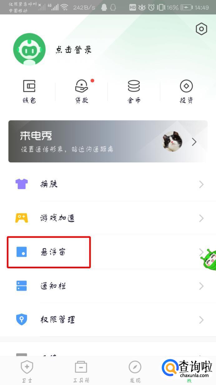 点击悬浮窗设置。