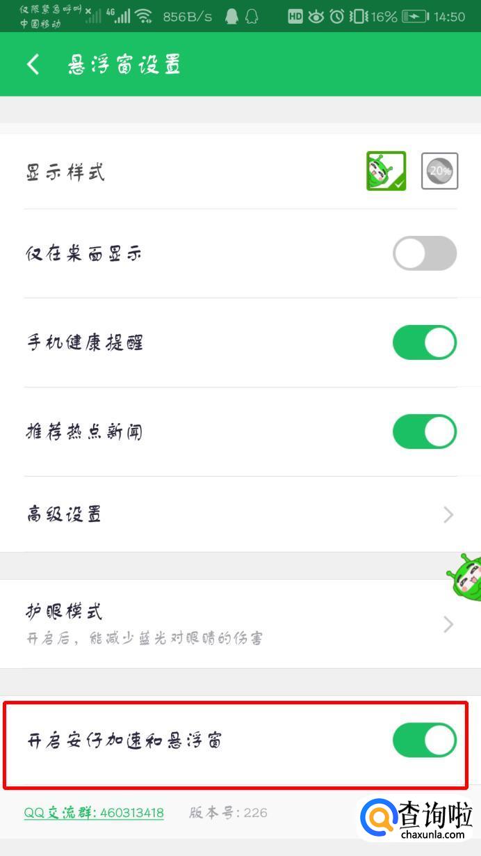 进入界面后点击“开启安仔加速的悬浮窗”的滑块,关闭它。