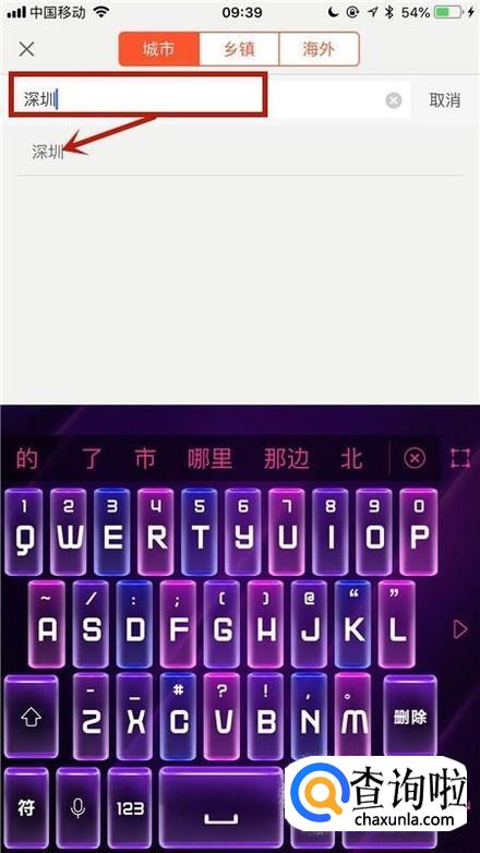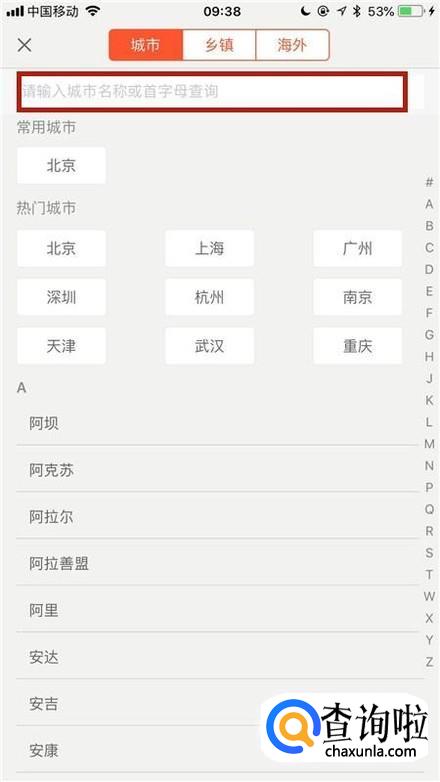 然后输入你想要查更换的城市名称并点击它,如下图所示。