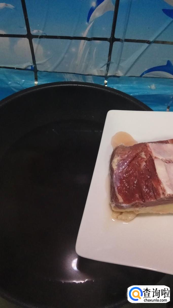 准备一块新鲜的牛肉,用水洗净后,放入开水中焯水,待到颜色发白,撇去浮沫就可以了。