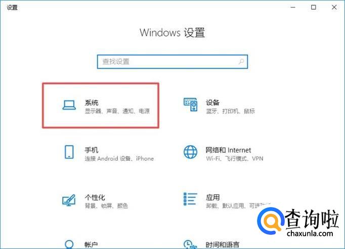之后我们点击弹出界面中的系统;