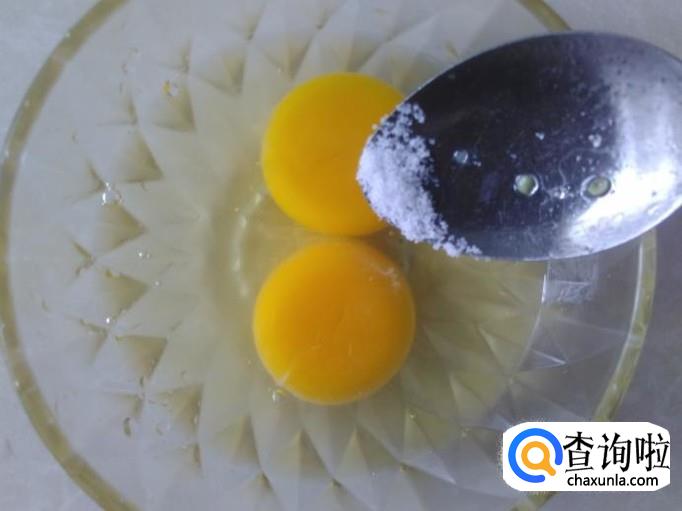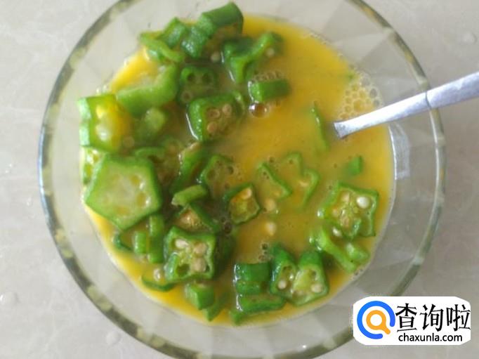 鸡蛋打到碗里,加适量的盐,再加炒好的秋葵进去搅拌均匀。
